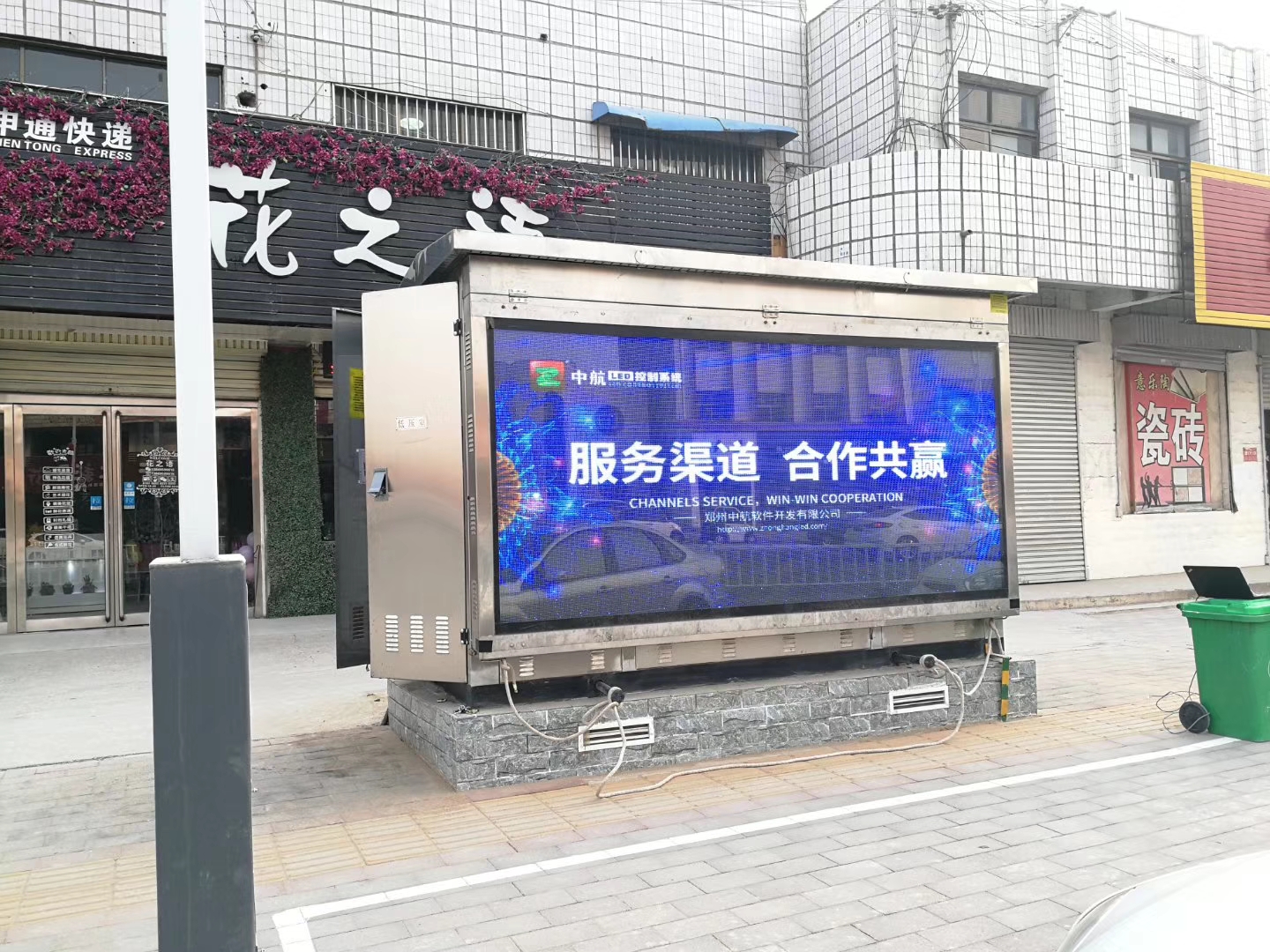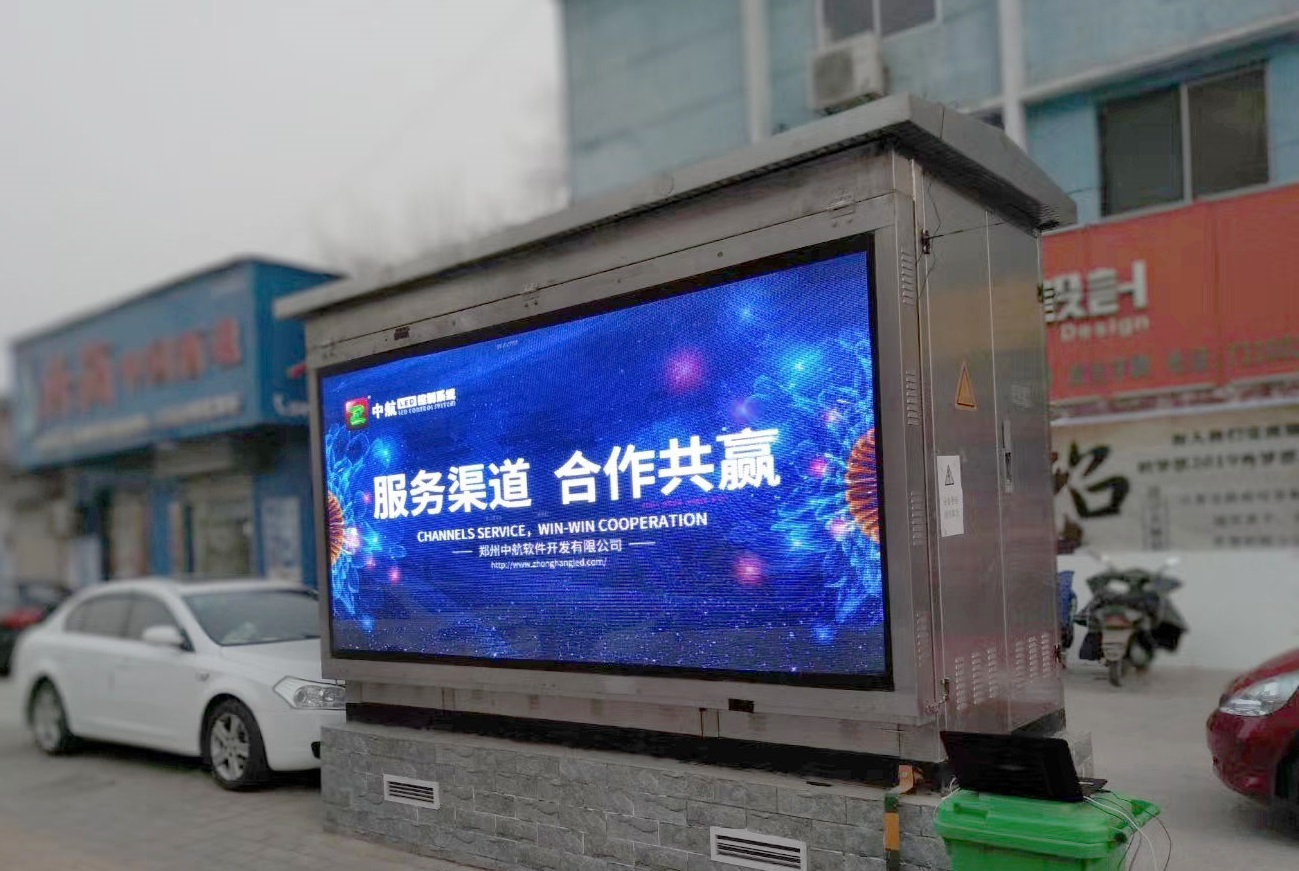 項目類型:城市街道屏控制方案:13張ZH-A200-4G異步一體卡+28張接收卡; 4G集群控制;