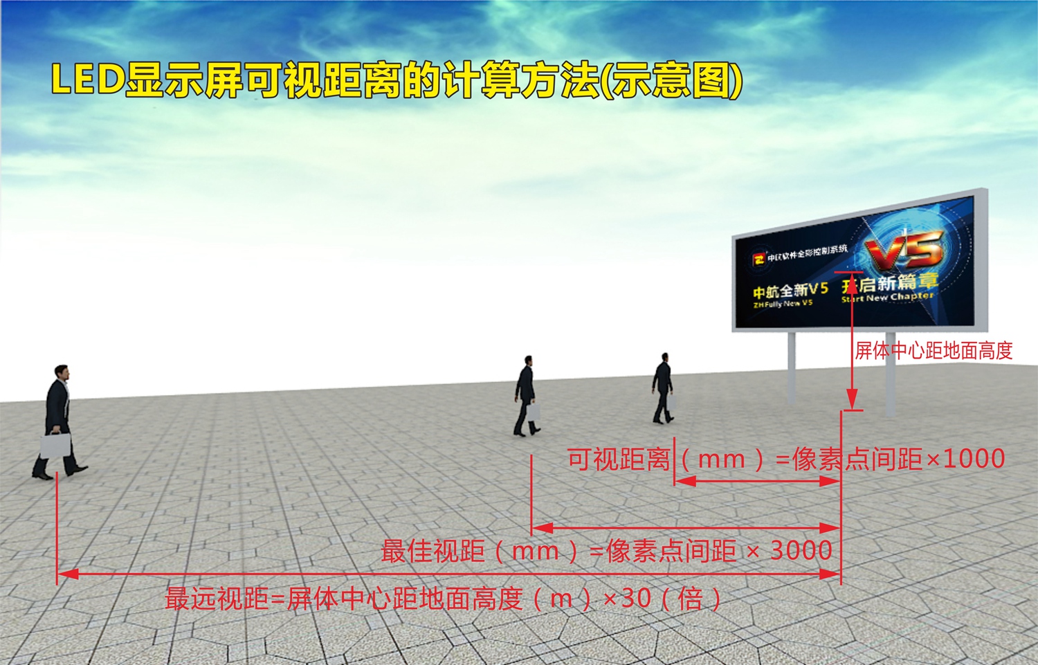 最遠(yuǎn)視距=屏體中心距地面高度(m)×30(倍)