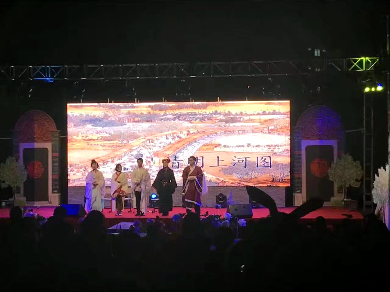 上海某知名大學(xué)演出現(xiàn)場,4張發(fā)送卡級(jí)聯(lián),96張接收卡,總點(diǎn)數(shù)3072*1152,中航全新V5完美帶載!