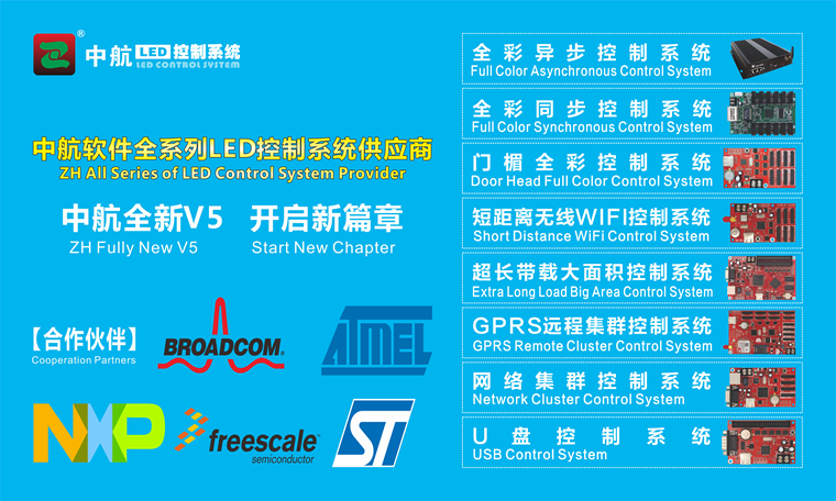 此次展覽會(huì)中航展示產(chǎn)品系列:全新V5,視頻處理器,全彩同步系列,全彩異步系列,門(mén)楣全彩(高、低灰)系列,超長(zhǎng)帶載網(wǎng)口卡,全面升級(jí)版WIFI系列,GPRS系列,網(wǎng)絡(luò)卡系列等。誠(chéng)邀您蒞臨中航展臺(tái),合作發(fā)展!