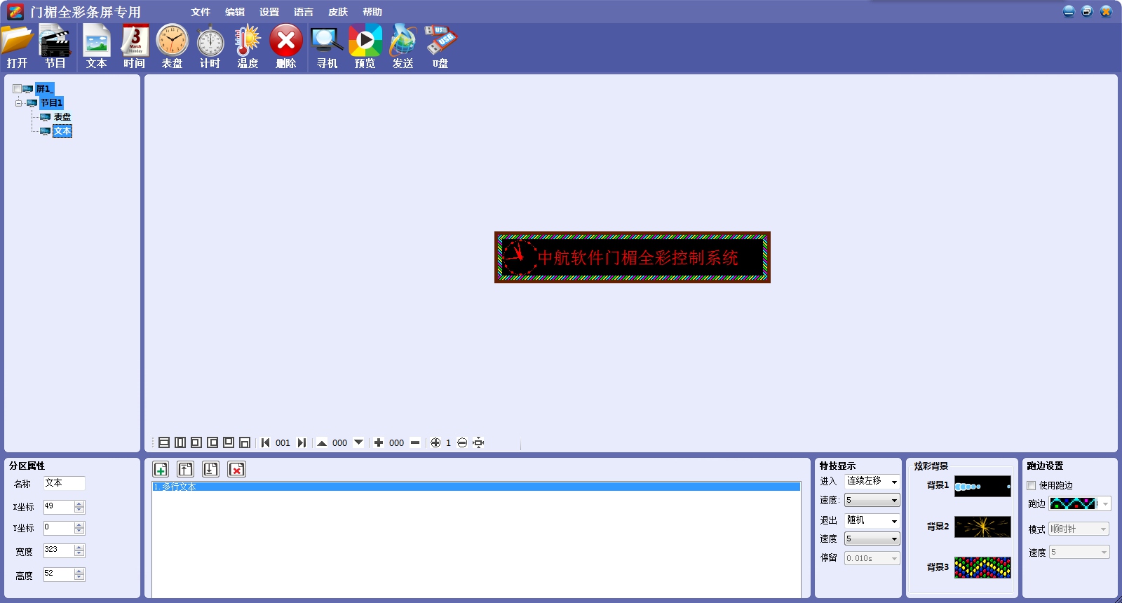 軟件功能:Led Flash Play圖文管理系統(tǒng),多節(jié)目編輯/多區(qū)域顯示/多種語言版本。