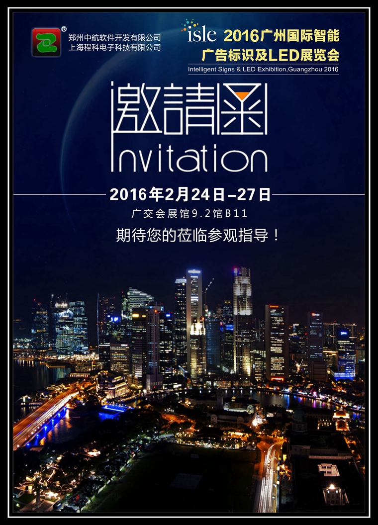 2016年,廣州國際智能廣告標(biāo)示及LED展覽會(huì)將于2月24-27日在廣交會(huì)展館舉辦!中航軟件展臺(tái)方案經(jīng)過兩個(gè)月的精心策劃,閃亮亮相!中航軟件誠邀您蒞臨9.2館B11展臺(tái)參觀指導(dǎo)!