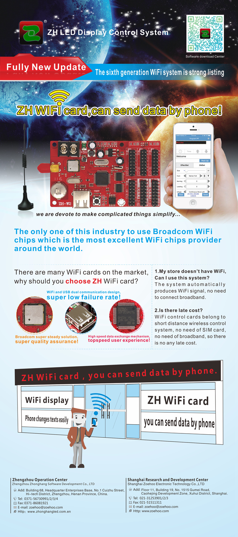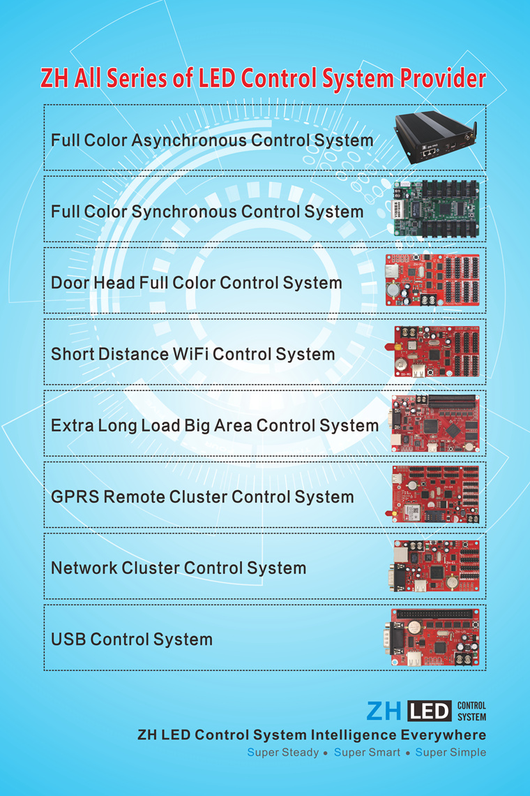The exhibition ZH will show the product line:The new V5, video processor, full color synchronous series, full color asynchronous series, doorhead full color (high, low grey) series, long with network port card, a comprehensive upgrade version of WIFI series , GPRS series, network card series. Invite you to visit the ZH booth, cooperation and development!